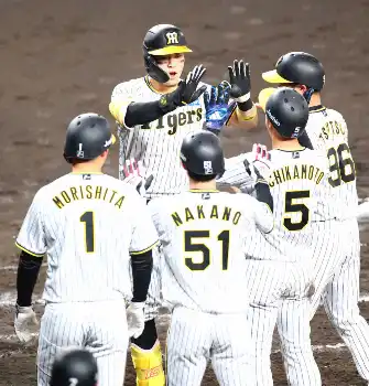 この日の主役は佐藤輝だった。3回1死満塁で巨人2番手・松井颯の3球目シンカーを強振。逆風を切り裂くバックスクリーン右への19号先制満塁弾に、二塁手前で力強く右手を掲げた。