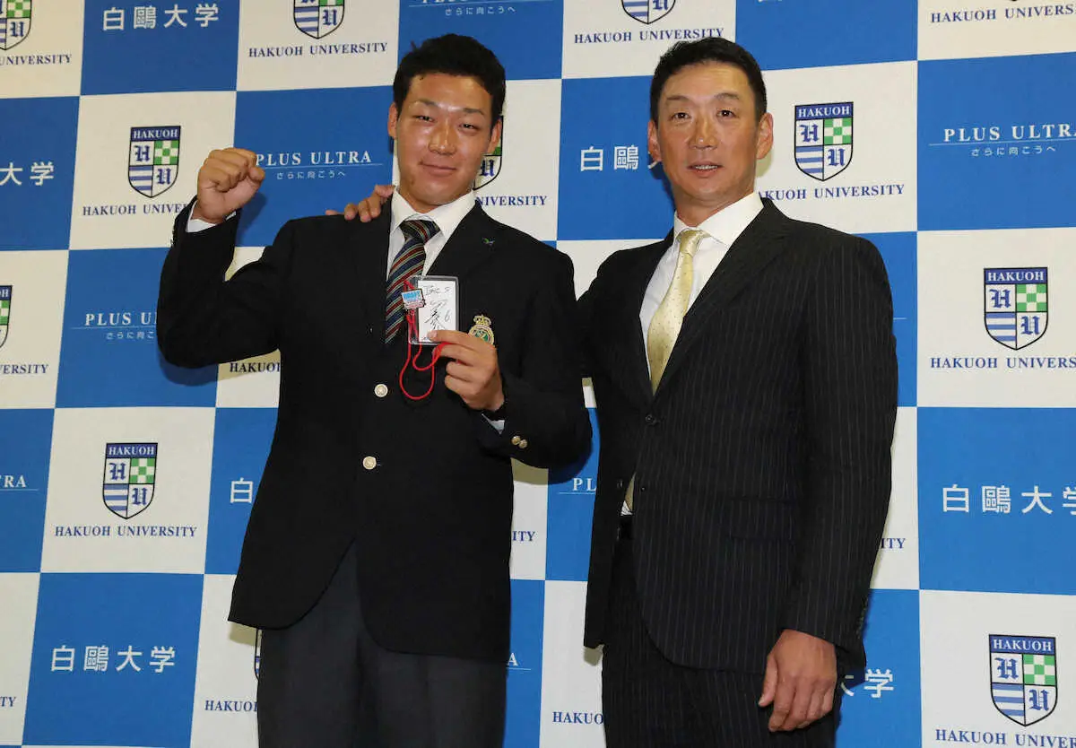 2020年ドラフトで指名あいさつを終え、矢野燿大監督(当時、右)と並んでガッツポーズするドラフト1位指名の佐藤輝明内野手(近大) Photo by スポニチ 【岡田阪神18年ぶりVの裏側(1)】生え抜き野手の育成へ ドラフト戦略の… ギャラリーで見る この記事のフォト 2023年09月15日の画像一覧 もっと見る 2023年09月15日の画像をもっと見る