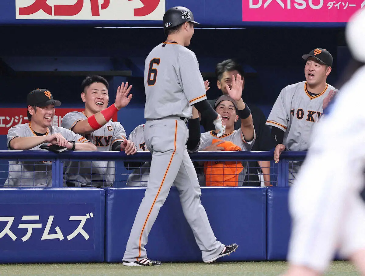<中・巨>4回、ソロの岡本和はナインと喜び合う (撮影・西川祐介) Photo by スポニチ 巨人・岡本和真「入って良かった」ミスター超えキング独走40号!坂本以来… ギャラリーで見る この記事のフォト 2023年09月15日の画像一覧 もっと見る 2023年09月15日の画像をもっと見る