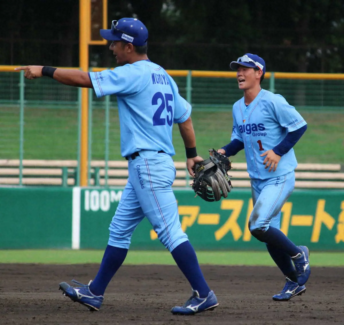 OBの近本が阪神でリーグ優勝を果たした翌日に、同社は本戦の出場権獲得で続いた。その近本が社会人時代に背負っていた背番号1を受け継いだのが、入社4年目の清水だ。