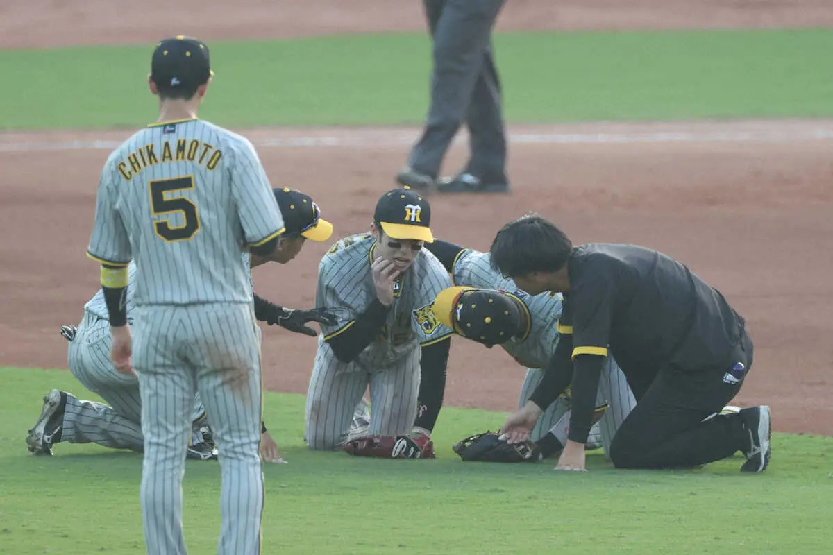 <広・神>8回1死、田村の打球が顔に当たり、ベンチに引き上げる中野(右)を心配そうに見つめる岡田監督(左)(撮影・平嶋 理子) Photo by スポニチ 阪神・岡田監督 ポストシーズンへ調整に頭悩ます「紅白戦?いやいや、無… ギャラリーで見る この記事のフォト 2023年09月16日の画像一覧 もっと見る 2023年09月16日の画像をもっと見る
