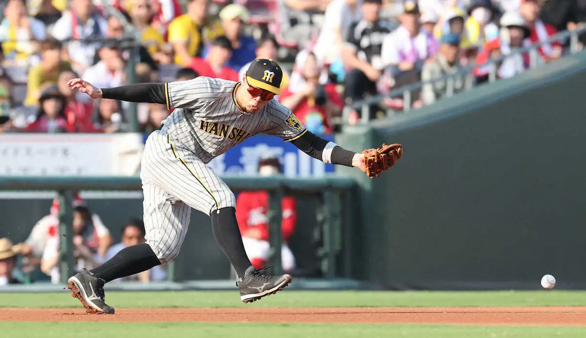 5回裏は大山悠輔がゴロをはじいた。さらに安打で1死一、二塁となったが、難しい遊ゴロ併殺でしのいだ。