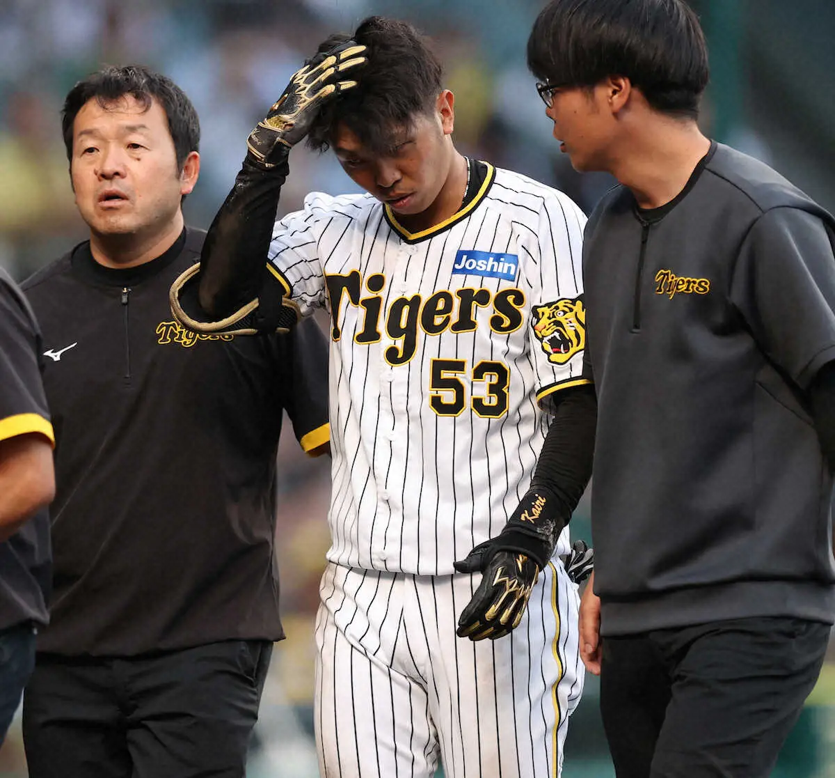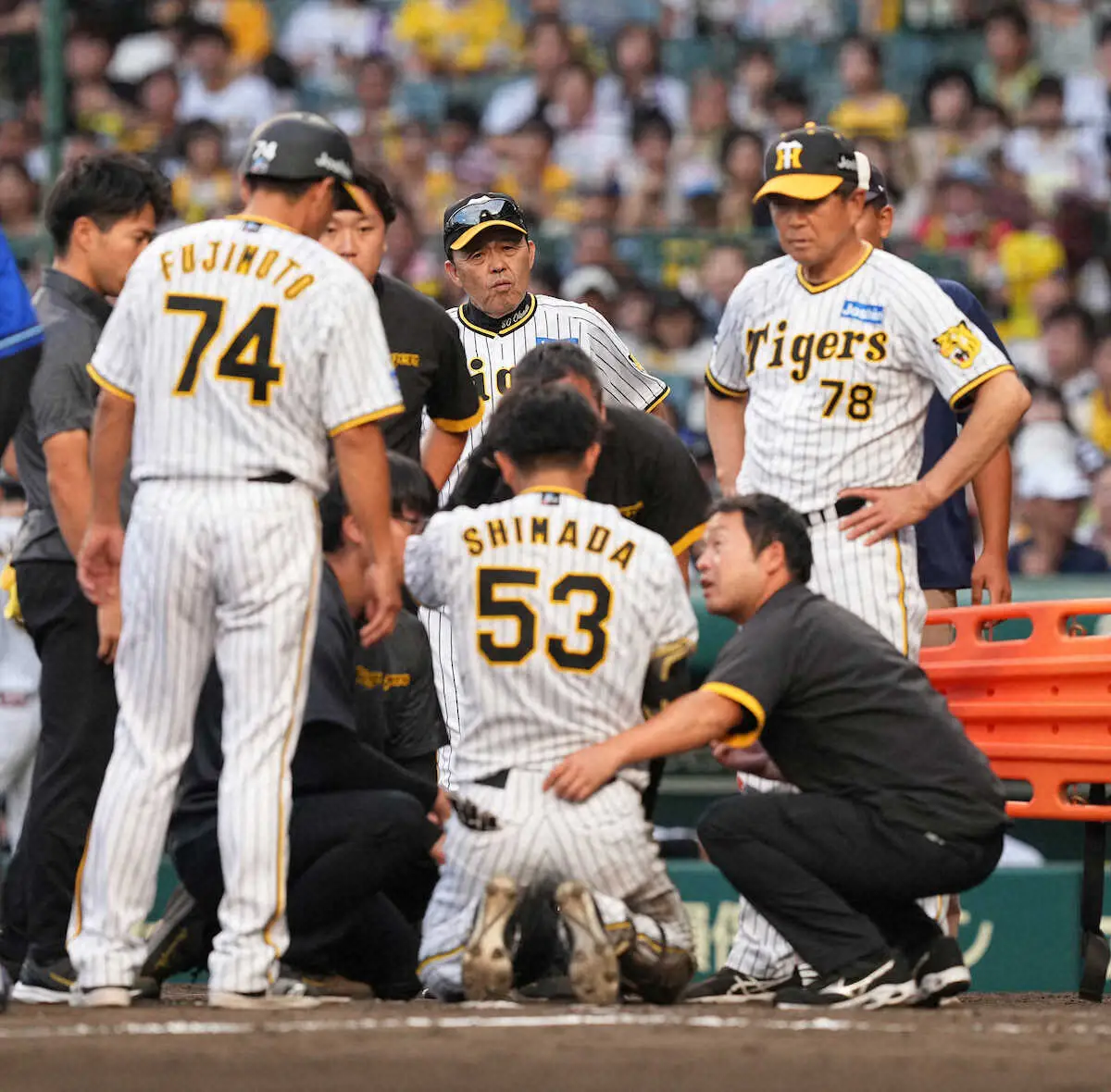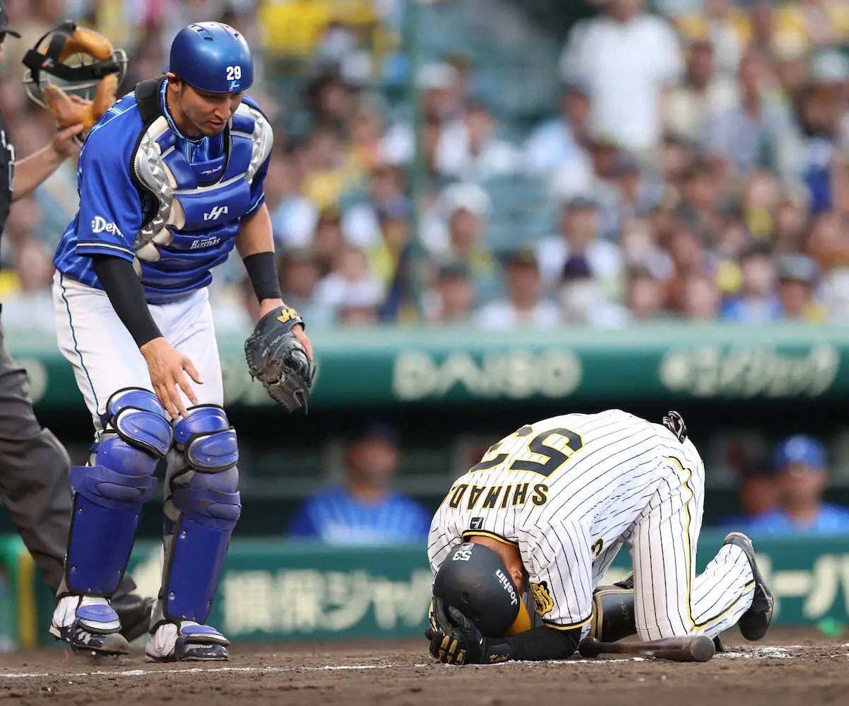 <神・D>9回2死、島田にエスコバー(62)が頭部死球を与え、岡田監督(左)に頭を下げる三浦監督(撮影・北條 貴史) Photo by スポニチ 頭部死球で交代の阪神・島田「大丈夫」 エスコバーから謝罪に「逆に“避け… ギャラリーで見る この記事のフォト 2023年09月18日の画像一覧 もっと見る 2023年09月18日の画像をもっと見る