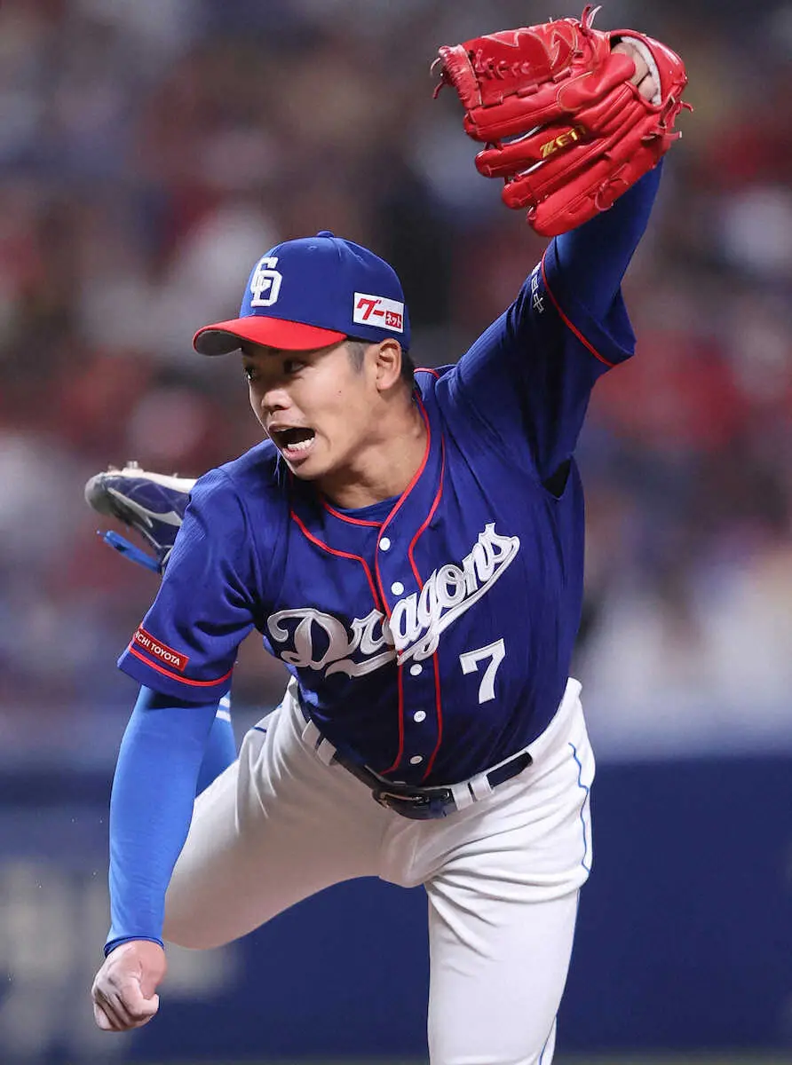 4回1死から小園に二塁への内野安打を許し、初安打を浴びたが冷静に後続を断った。5回も先頭・坂倉に左前打を浴びたものの続くマクブルームを右飛、田中を一直併殺に打ち取った。
