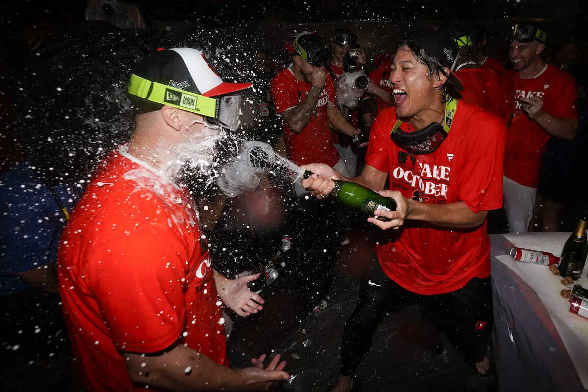喜びが爆発した。初体験のシャンパンファイト。藤浪は仲間と「TAKE OCTOBER(10月に行こう)」のTシャツを着て心の底から楽しみ、ブランドン・ハイド監督にもシャンパンをかけた。「日本でビールかけをしたことがなかったので、めちゃくちゃ興奮した。最高」と語り「(叫びすぎて)喉がガラガラ」と笑った。