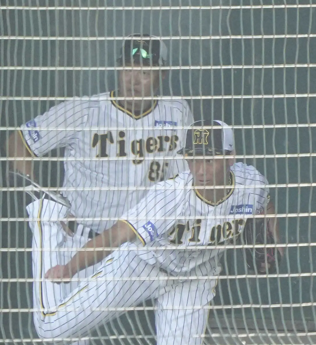 左脇腹の筋挫傷で2軍調整を続ける阪神・湯浅京己投手が、19日、兵庫県西宮市の鳴尾浜球場で、離脱後初めてブルペン投球を行った。この日は捕手を座らせ30球を投じた。