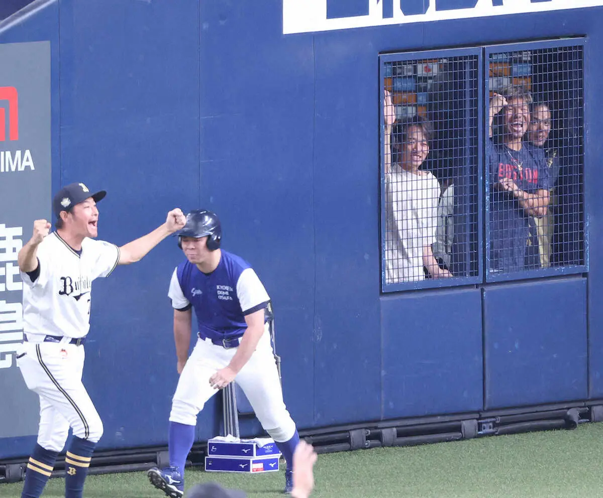 オリックス・頓宮は体調不良が回復し、京セラドームに駆けつけた。登録は見送られたが、胴上げに間に合った主砲は、仲間とともに喜びを分かち合った。