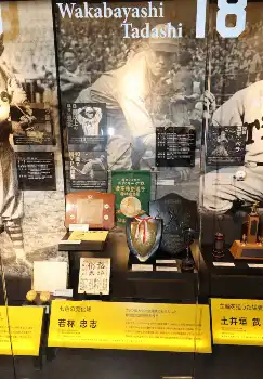 遺品は、阪神球団創設初年度1936(昭和11)年「大阪タイガース」当時と41年「阪神軍」当時の選手証(身分証明書)、戦後49年に来日したサンフランシスコ・シールズとの日米野球に全日本の投手として出場した際の記念盾、ベーブ・ルースやフランク“レフティ”オドールから贈られたサインボールなど約30点。このうち数点が館内の若林忠志コーナーに展示された。