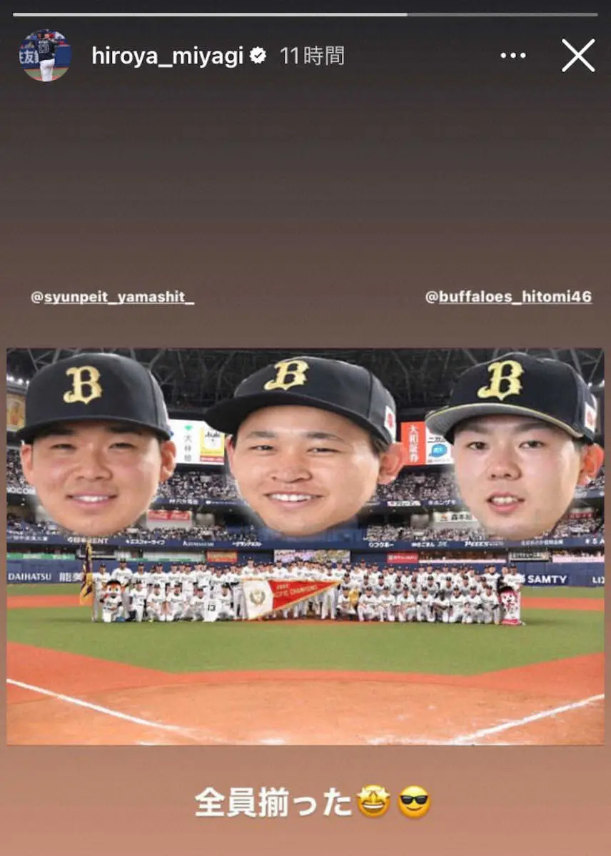 オリックス・宮城の公式インスタグラム(@hiroya_miyagi)から オリ・宮城“緊急”胴上げ参加!?「雑コラw」のSNSにオリ党、愛のツッコミ連… ギャラリーで見る この記事のフォト 2023年09月22日の画像一覧 もっと見る 2023年09月22日の画像をもっと見る
