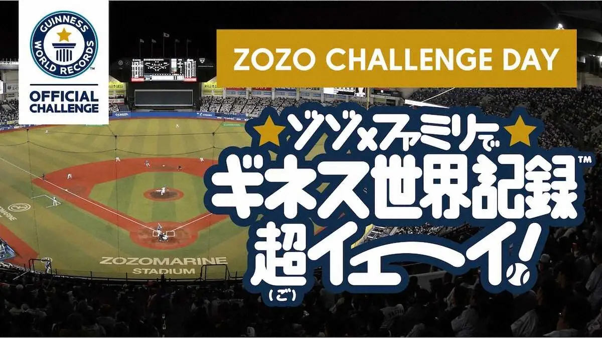 ロッテは30日の西武戦(ZOZOマリンスタジアム、午後6時試合開始)で、株式会社ZOZOの冠協賛試合「ZOZO CHALLENGE DAY―ゾゾ×ファミリーでギネス世界記録超(ご)イェーイ―」を開催すると発表した。