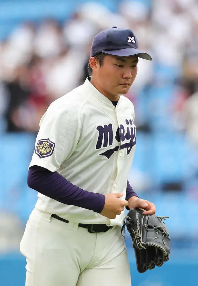 <早大・明大>4回で降板した明大・村田(撮影・大城 有生希)