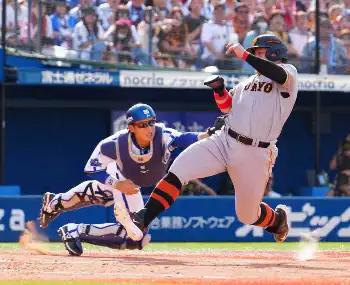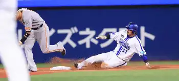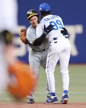 危ないっ!交錯と思いきや阪神・坂本と中日・カリステが“熱い抱擁”「優しい世界」「愛し合う2人」
