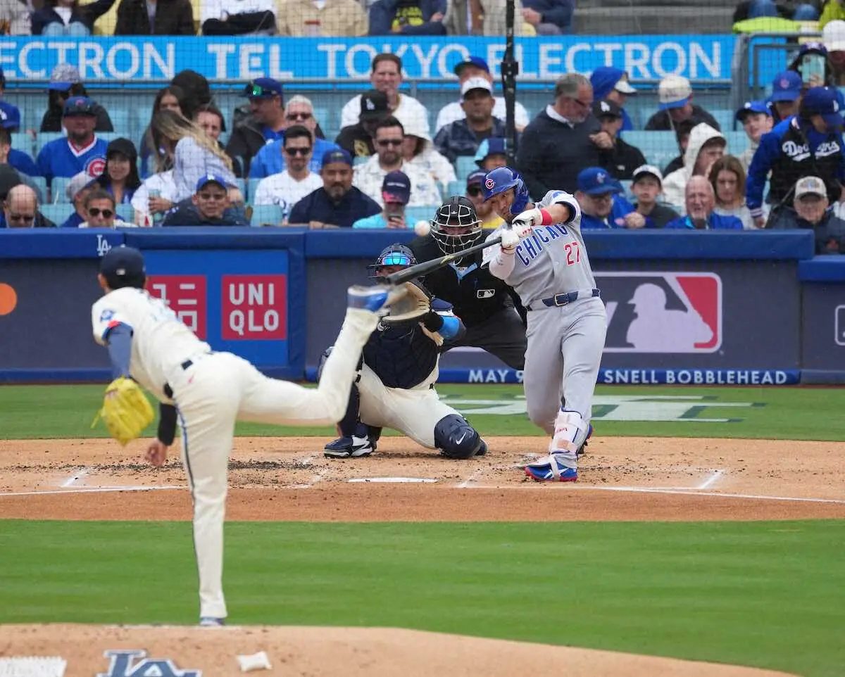 <カブス・ロッキーズ>6回、二塁打を放つ鈴木(撮影・光山 貴大)