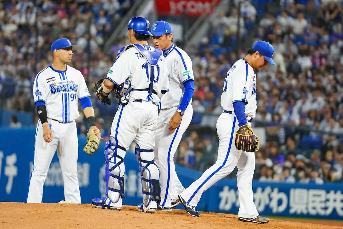 先発・坂本が4回3失点で2番手に送った先発陣の一角・浜口も3四球に自らの失策も絡み3失点。抑えの森原が下半身の不安でベンチを外れる中、三浦監督は「浜口は勝つためにベンチに入ってもらった。ミスも絡んで試合の流れをつかめなかった」と語った。