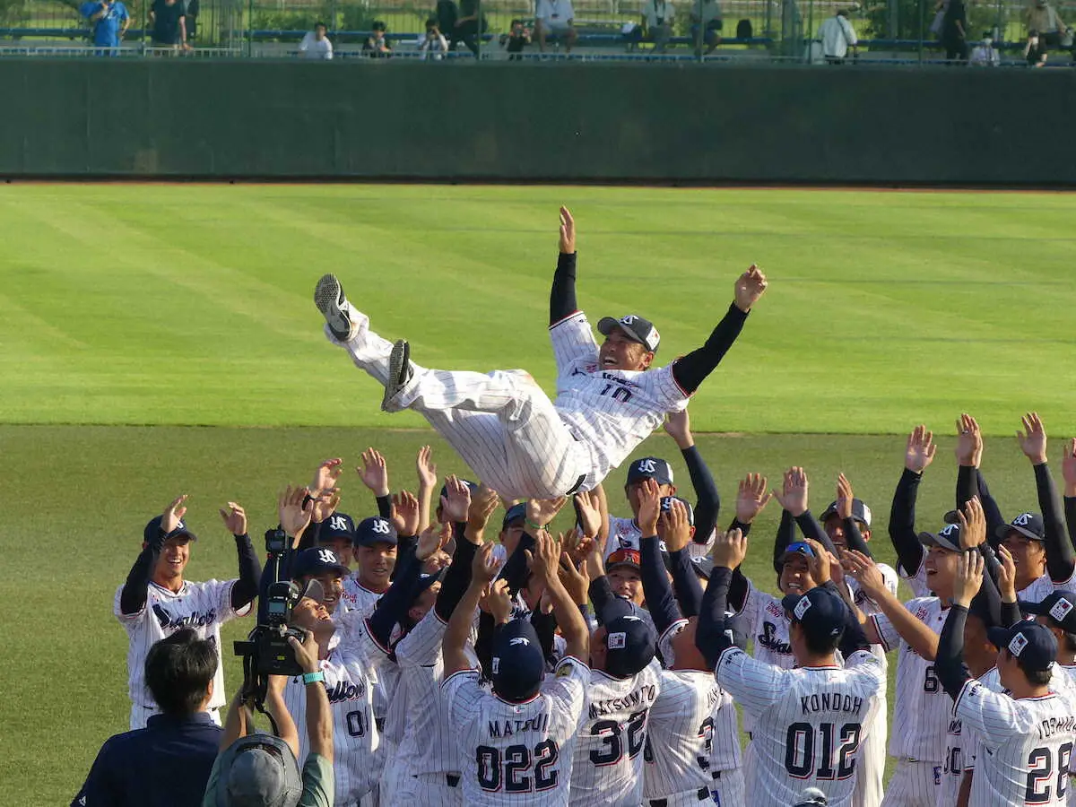 試合後には花束を受け取り8度胴上げされた。内外野守れる万能野手は14年目の今季はここまで1軍出場がなく、30日のDeNA戦(神宮)で1軍に合流する。