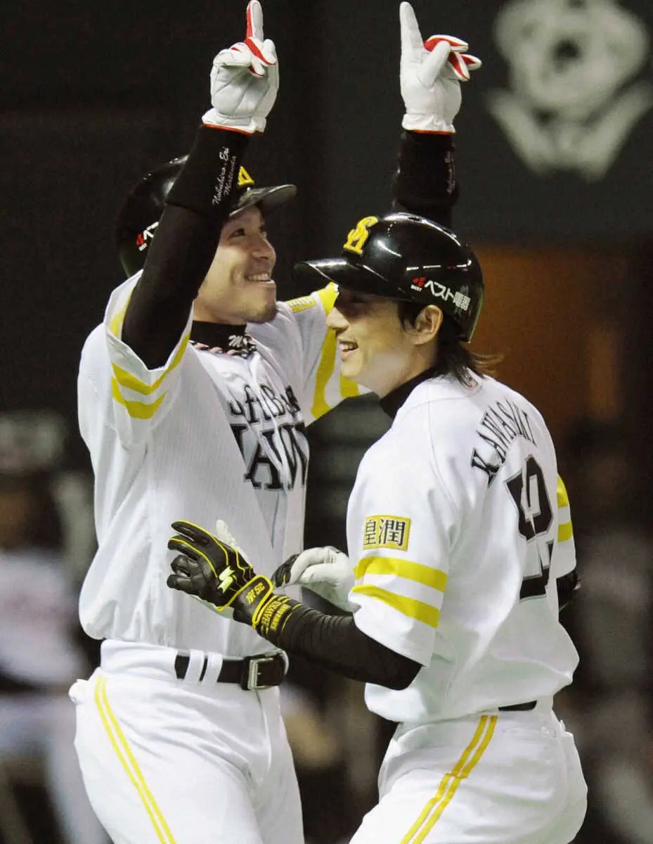 ソフトバンクで同僚だった川崎(右)と松田