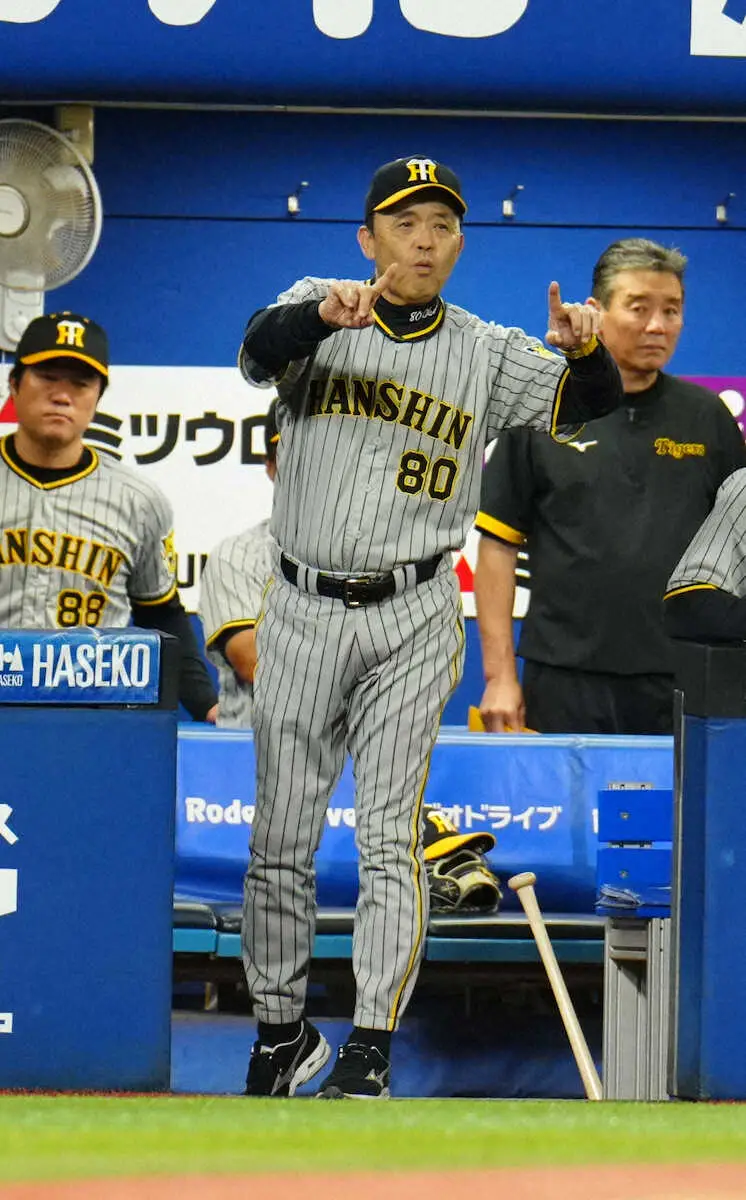 <D・神>9回、リクエストする岡田監督(撮影・島崎忠彦)