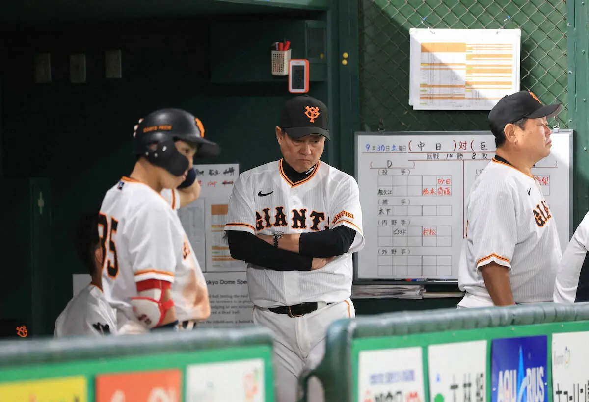 巨人の原辰徳監督(65)は逆転負けを喫した30日の中日戦(東京D)後、同一監督として球団初となる2年連続Bクラスが確定したことをファンに謝罪した。