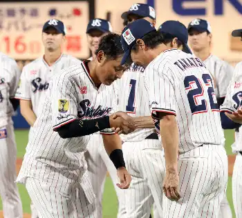 引退表明のヤクルト荒木 代打で三振も温かい拍手 試合後にはナインから胴上げ