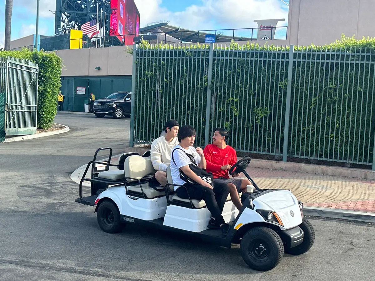 カートに乗り、球場入りした大谷(左)と水原通訳。大谷の右肘には包帯が巻かれていた(撮影・柳原 直之) Photo by スポニチ エンゼルス大谷が球場入り!13日ぶりチーム合流 右肘には包帯 監督「肘… ギャラリーで見る この記事のフォト 2023年10月01日の画像一覧 もっと見る 2023年10月01日の画像をもっと見る