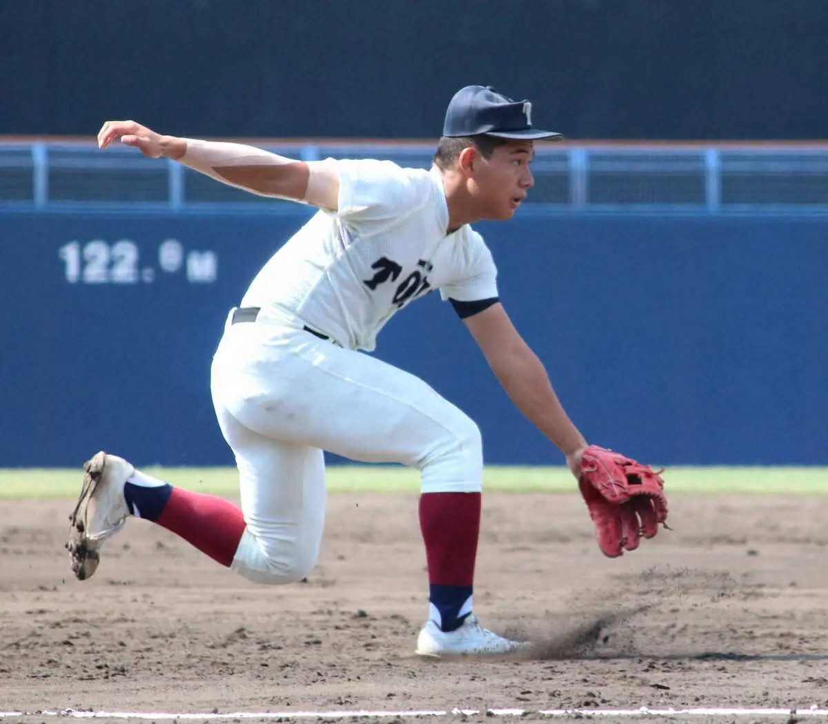 背番号9の徳丸が三塁に入った。そのことを問われた西谷浩一監督は、さらりと言った。「両投げをうまいこと生かそうと思いました」。1年秋から「3番・右翼」を担う高校通算24本塁打の注目選手。内野で出場したことが驚きなのではない。今夏まで左投げだったはずの外野手が左手にグラブをはめ、右腕で投げ始めたのだ。