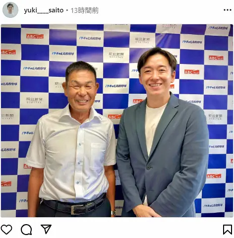 元日本ハム斎藤佑樹氏(35)が13日までに自身のインスタグラムを更新。06年夏の甲子園準決勝で対戦した鹿児島工の当時の監督、中迫俊明氏との2ショットを公開した。