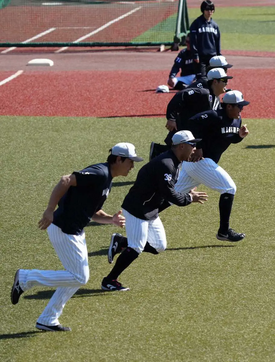 アップする安田、大下、松川、中村奨(手前から)(撮影・長久保 豊)