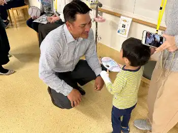 井口氏は2001年の愛基金創設以来、スポーツ教室や小児病棟の慰問を続けている。