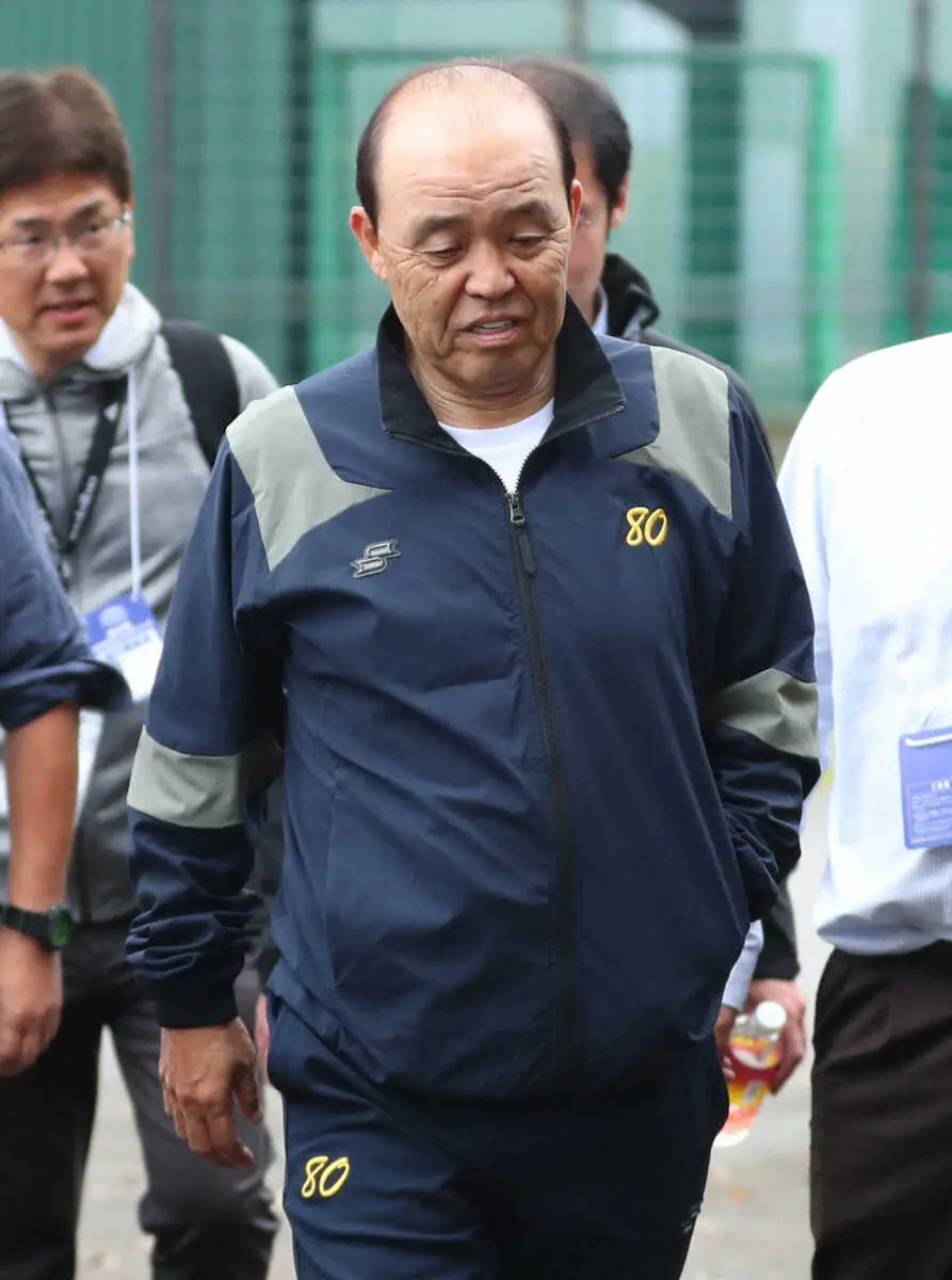 <フェニックスリーグ 西・神>室内練習場をあとにする岡田監督(撮影・岸 良祐)