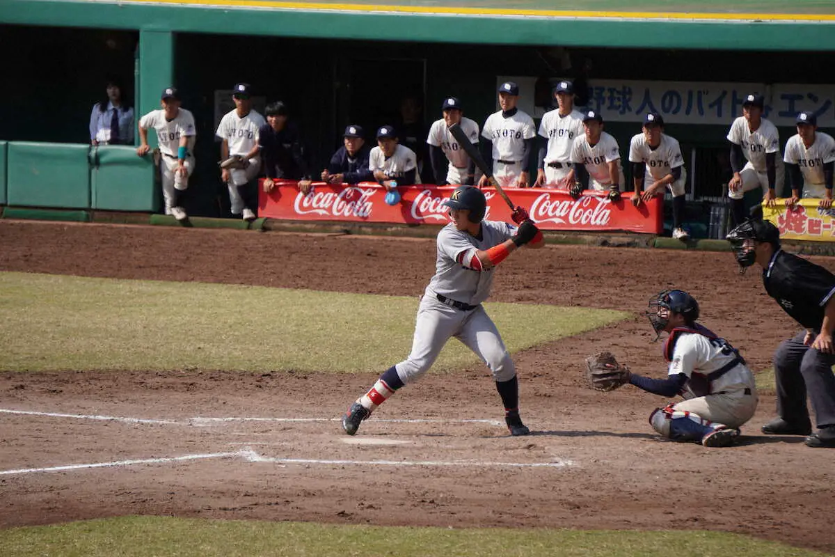 負けられない一戦で最上級生が力を発揮した。同点の8回、先頭の中井颯良(4年)が遊撃内野安打で出塁。次打者の有馬諒(4年)は死球で好機を拡大し相手投手のボークで二、三塁。1死後、5番の岑幸之祐(4年)が2ボールから決勝の中犠飛を放った。