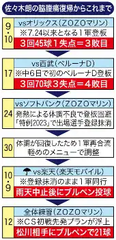 体調不良から戦列に戻ったものの、ライブBPなど実戦形式の登板も行わない“ぶっつけ”で9月17日の西武戦以来の登板。今季10勝の種市らが故障で離脱している苦しい台所事情もあって先発したが、役割は「ショートスターター」だった。最終調整だった12日のブルペン投球での感覚は「良くなかった」というが、アドレナリン全開の好投。吉井監督も「朗希がゲームをつくってくれた。今の状態で、最高のボールを投げた」と絶賛した。