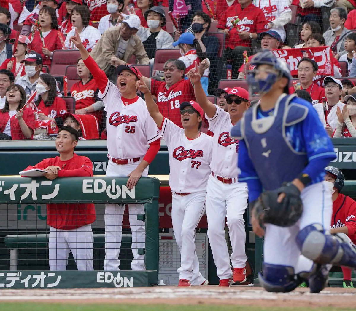 しかし、同点の8回に先頭の菊池が相手4番手・上茶谷から左前打を放ち出塁。野間もバットの席に当たったボテボテの遊ゴロで全力疾走。内野安打でチャンスを拡大し、西川の送りバントで相手野選を誘い満塁に。代打・田中が新井監督の起用に応える右前打を放ち勝ち越しに成功した。秋山も左犠飛で加点。終盤に2点のリードを奪った。