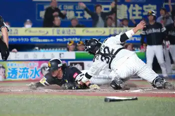 CS1st<ロ・ソ>6回1死二塁、近藤の右前打で本塁をついた柳田はタッチアウト。捕手・佐藤都(撮影・長久保 豊) Photo by スポニチ ロッテ・荻野 好返球で先制阻止と“同時”の緊急地震速報にネット騒然「縦… ギャラリーで見る この記事のフォト 2023年10月16日の画像一覧 もっと見る 2023年10月16日の画像をもっと見る