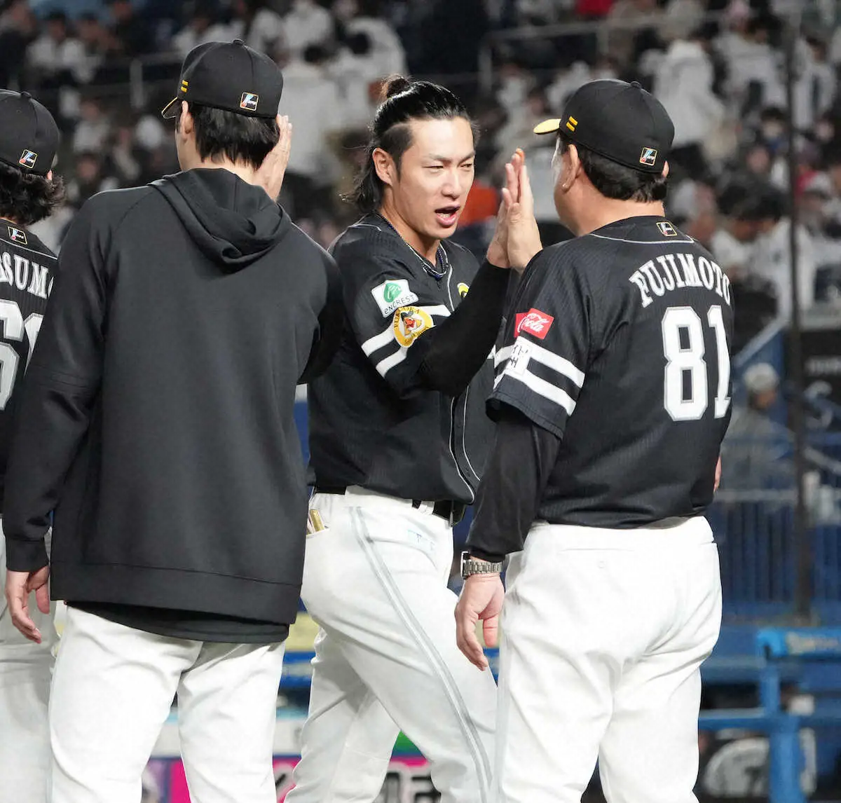 バックネット裏には昨季までのエースでメッツ千賀滉大の姿があった。古巣の奮闘に拍手を送り、リードした後に会場をあとにした。「(千賀が)来てましたね。ひとまわり、格好良くなってました」。海の向こうで活躍する元チームメートの前で、負けじと格好いいプレーを見せた。