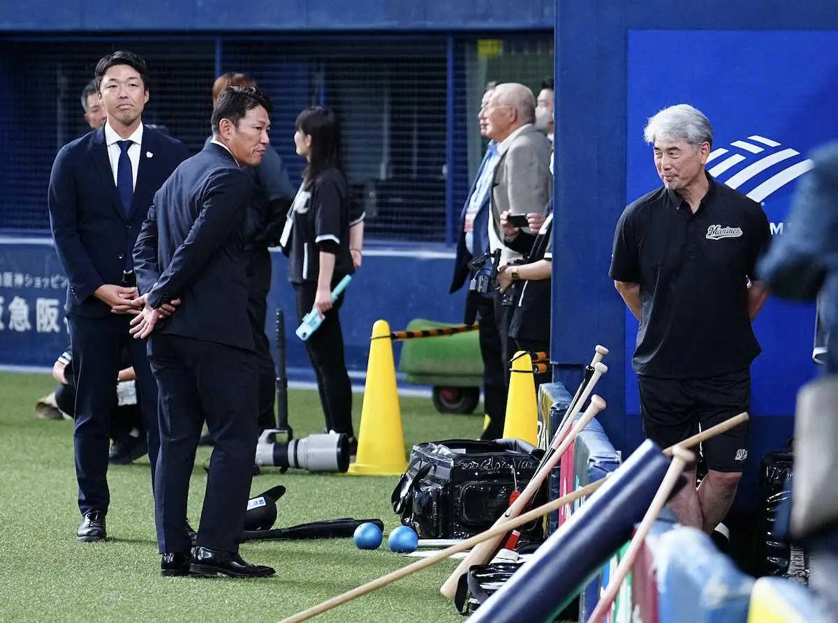 <オ・ロ>井端監督(右)と言葉をかわす中嶋監督(撮影・平嶋 理子) Photo by スポニチ 侍J井端監督がオリックス、ロッテの全面協力姿勢に感謝 紅林に「ショート… ギャラリーで見る この記事のフォト 2023年10月19日の画像一覧 もっと見る 2023年10月19日の画像をもっと見る