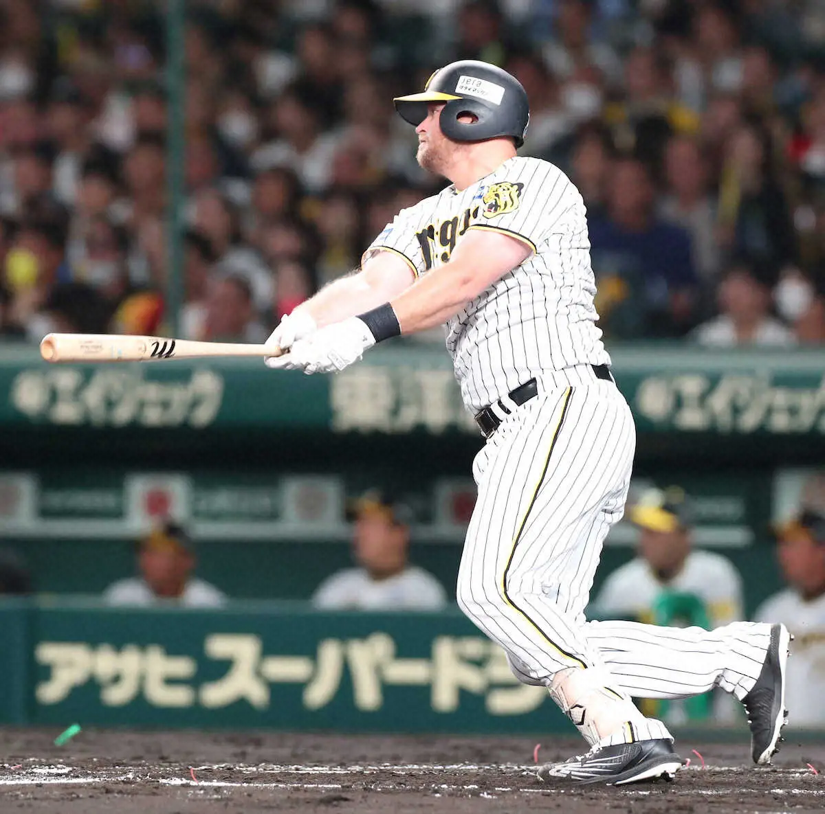 1点を追う2回1死から佐藤輝が右前打を放つと、続くノイジーが放った右前への打球を、広島・末包がまさかの後逸。打球が転々とする間に、一塁から佐藤輝が長駆生還した。