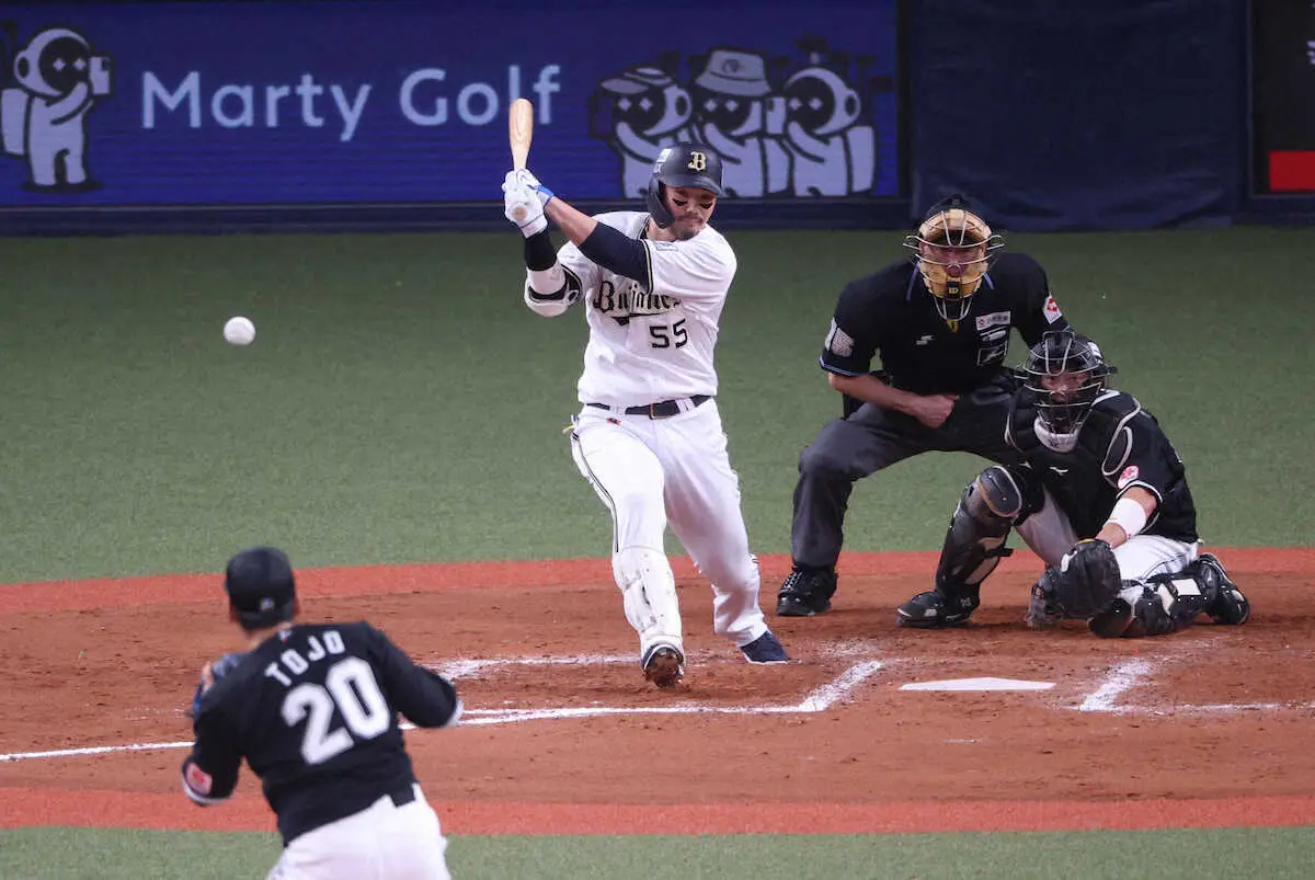 <オ・ロ>7回2死二塁、T-岡田は中前打を放つ(撮影・平嶋 理子)