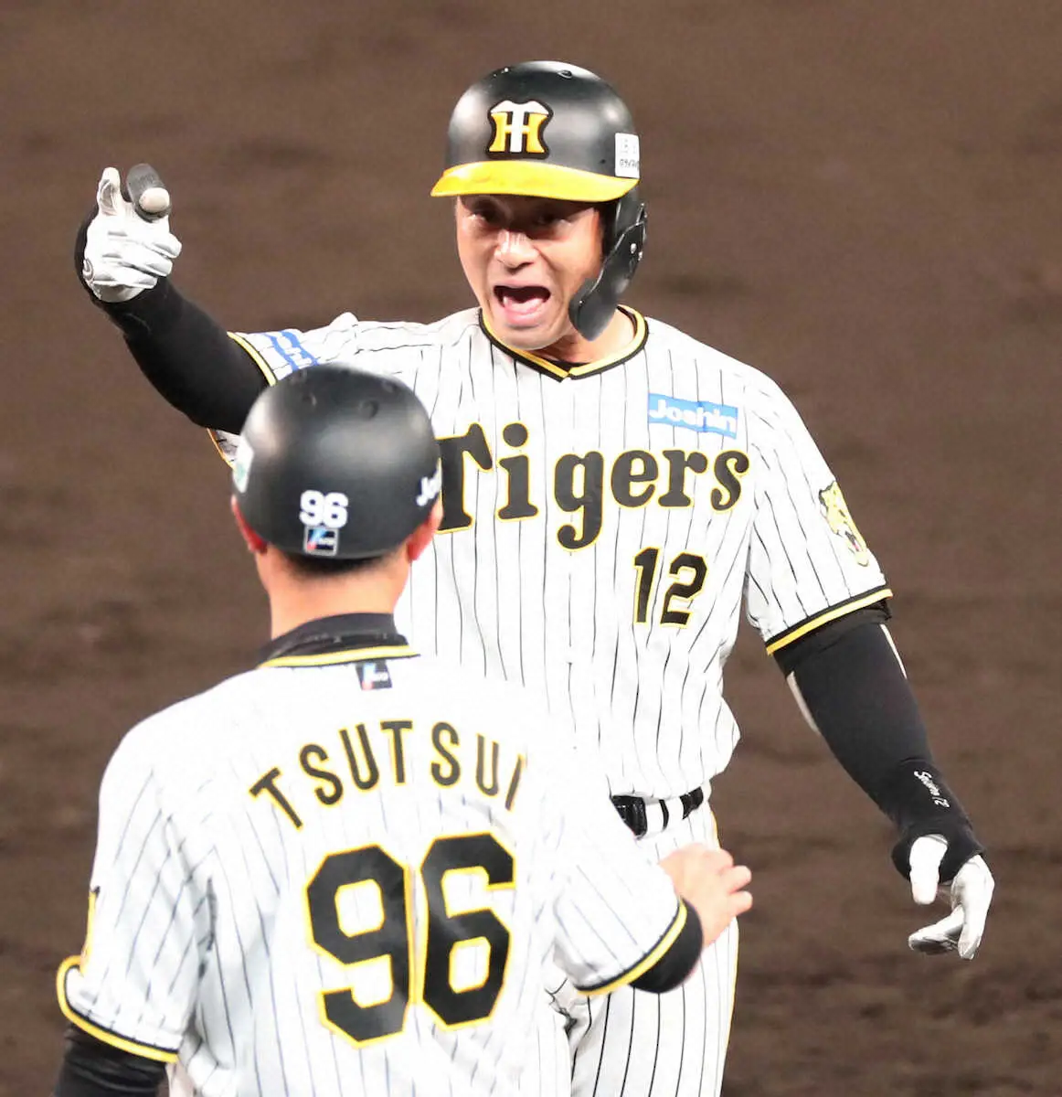 4回2死一、三塁でも左前へ。「後ろの聖也(木浪)が打っている。相手も回したくないというのもあるだろうし、ストライクゾーンで勝負してくると予測はつく」。沸き上がるベンチの仲間を指さし、一塁へと懸けた。殊勲の計2打点だ。第1戦は5回に死球から決勝生還し、第2戦の9回は木浪のサヨナラ打につなげる四球。3試合を通じて、ことごとく分岐点に顔を出した。