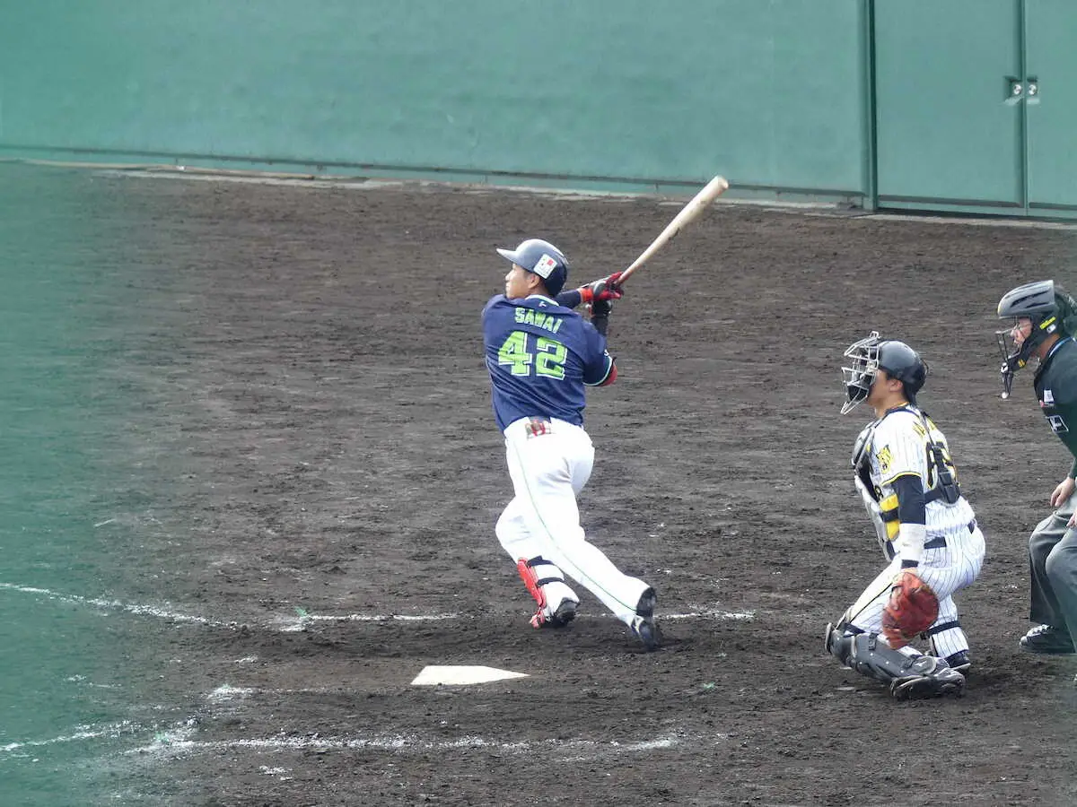 イースタン・リーグトップの18本塁打を放った将来の主軸候補。6回にも中前適時打し2安打3打点で、今秋7試合で打率・308、3本塁打、8打点と好調。視察した高津監督の前でアピールした。