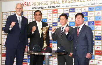 <アジアプロ野球チャンピオンシップ2023・記者会見>意気込みを語る(左から)オーストラリアのグライム・ロイド投手コーチ、チャイニーズ・タイペイの陳金鋒監督、侍ジャパン・井端監督、韓国・柳仲逸監督(撮影・尾崎 有希) Photo by スポニチ 侍・井端ジャパンと対戦 韓国監督が世代交代成功に自信「優勝を目指した… ギャラリーで見る この記事のフォト 2023年10月24日の画像一覧 もっと見る 2023年10月24日の画像をもっと見る