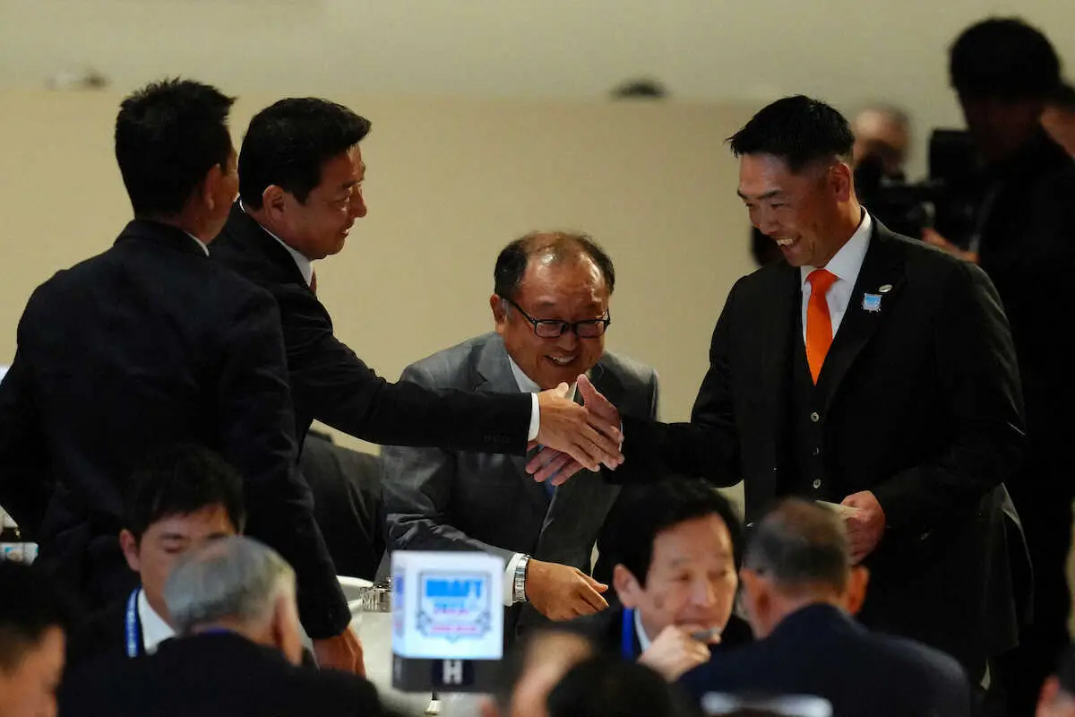 西舘を引き当てた阿部監督を笑顔で出迎えた水野雄仁スカウト部長(58)は、今ドラフトについて即戦力重視だったか問われると「そうですね。優勝できていませんので、即戦力ということで」と明言。
