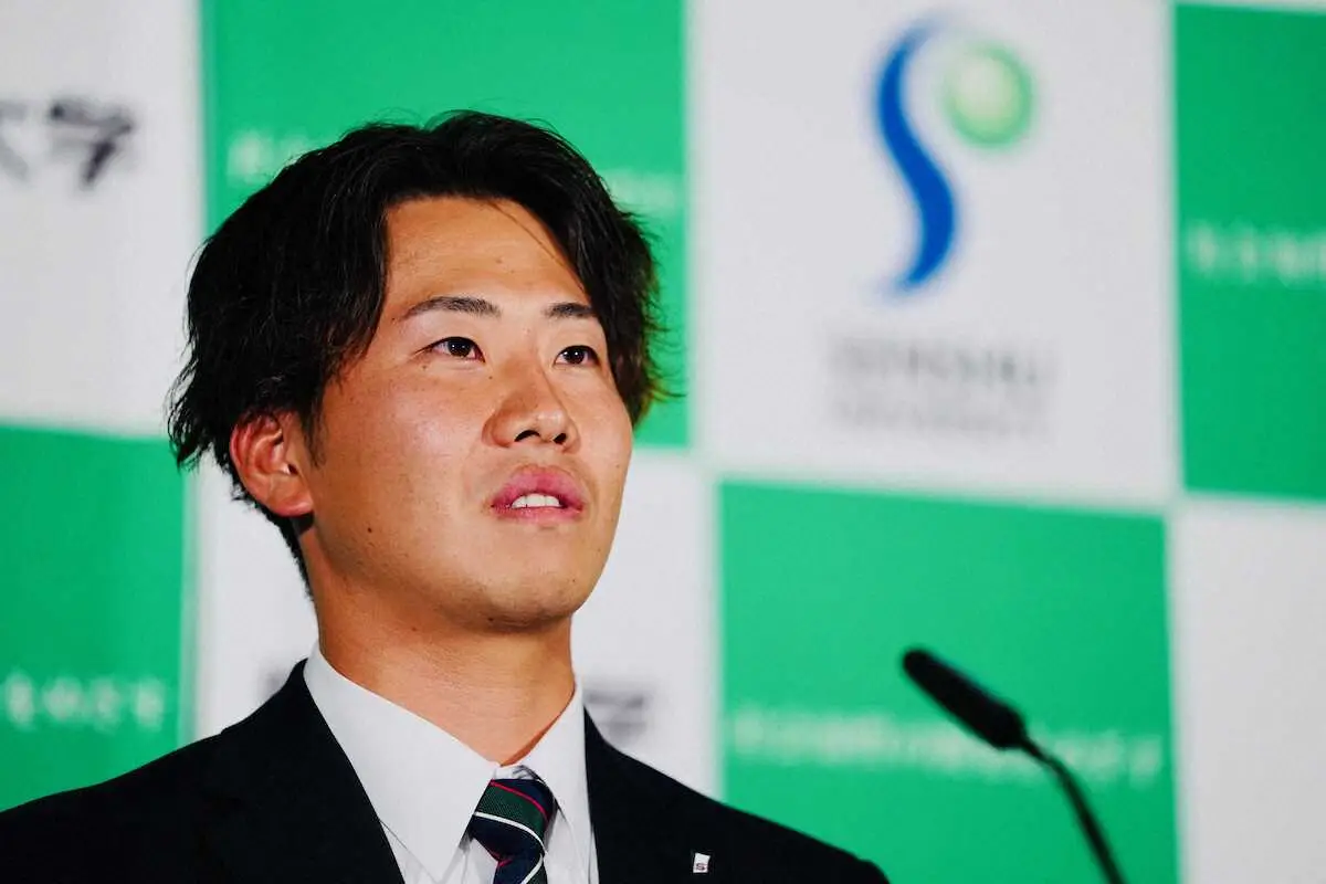 【ドラフト会議】ヤクルト1位指名の専大・西舘昂「1部でできなかった分、たくさん神宮の土を踏みたい」