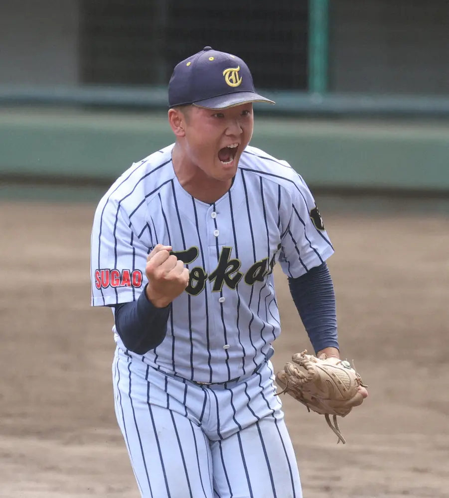 1メートル90、105キロの恵まれた体格から投げ下ろす最速153キロの直球が武器で、今春センバツでは3回戦の沖縄尚学戦で被安打6、7奪三振の完封勝利を挙げ、準々決勝・大阪桐蔭戦は6回を5安打2失点も7奪三振。ベスト8で敗れはしたものの全国で力を証明した。