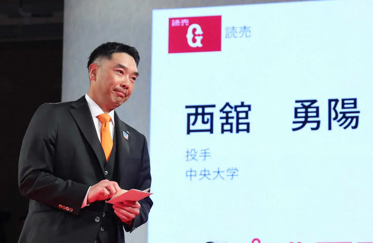 巨人・阿部新監督が大仕事!プロ野球のドラフト会議が26日、都内のホテルで行われ、巨人が1位で中大の最速155キロ右腕・西舘勇陽投手(21)を指名。日本ハムと競合の末に阿部監督が引き当て、交渉権を獲得した。本指名選手は5選手。高校生の指名はなく、ドラフト戦略の変革が見える指名となった。
