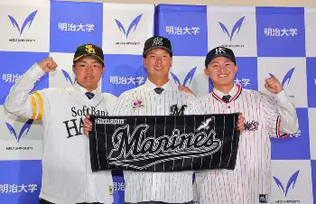 ロッテに1位で指名され記念撮影をする明大・上田(撮影・藤山 由理) Photo by スポニチ 「“きゅうと”と呼んで」ロッテ1位・上田希由翔、明大14年連続プロ指名の先… ギャラリーで見る この記事のフォト 2023年10月27日の画像一覧 もっと見る 2023年10月27日の画像をもっと見る