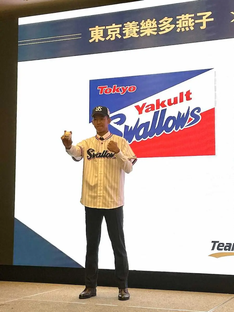 台湾人の父親と日本人の母親を持つハーフの最速147キロ右腕は「ヤクルトを代表するような投手を目指して頑張ります!応援よろしくお願いします」とコメントした。