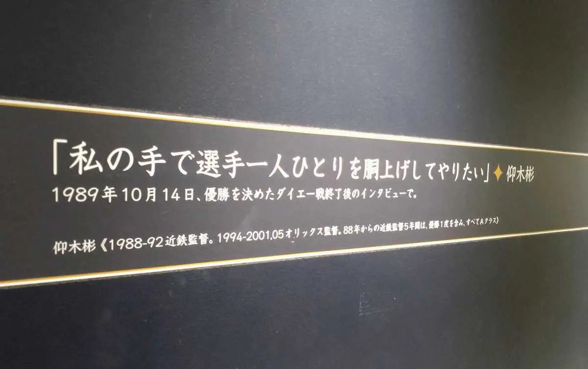 京セラドーム大阪の一塁側スタンド通路には歴代のオリックスや近鉄の野球人が残した名言が掲示されている。日本シリーズ開幕前日。公式練習の合間にのぞいた。