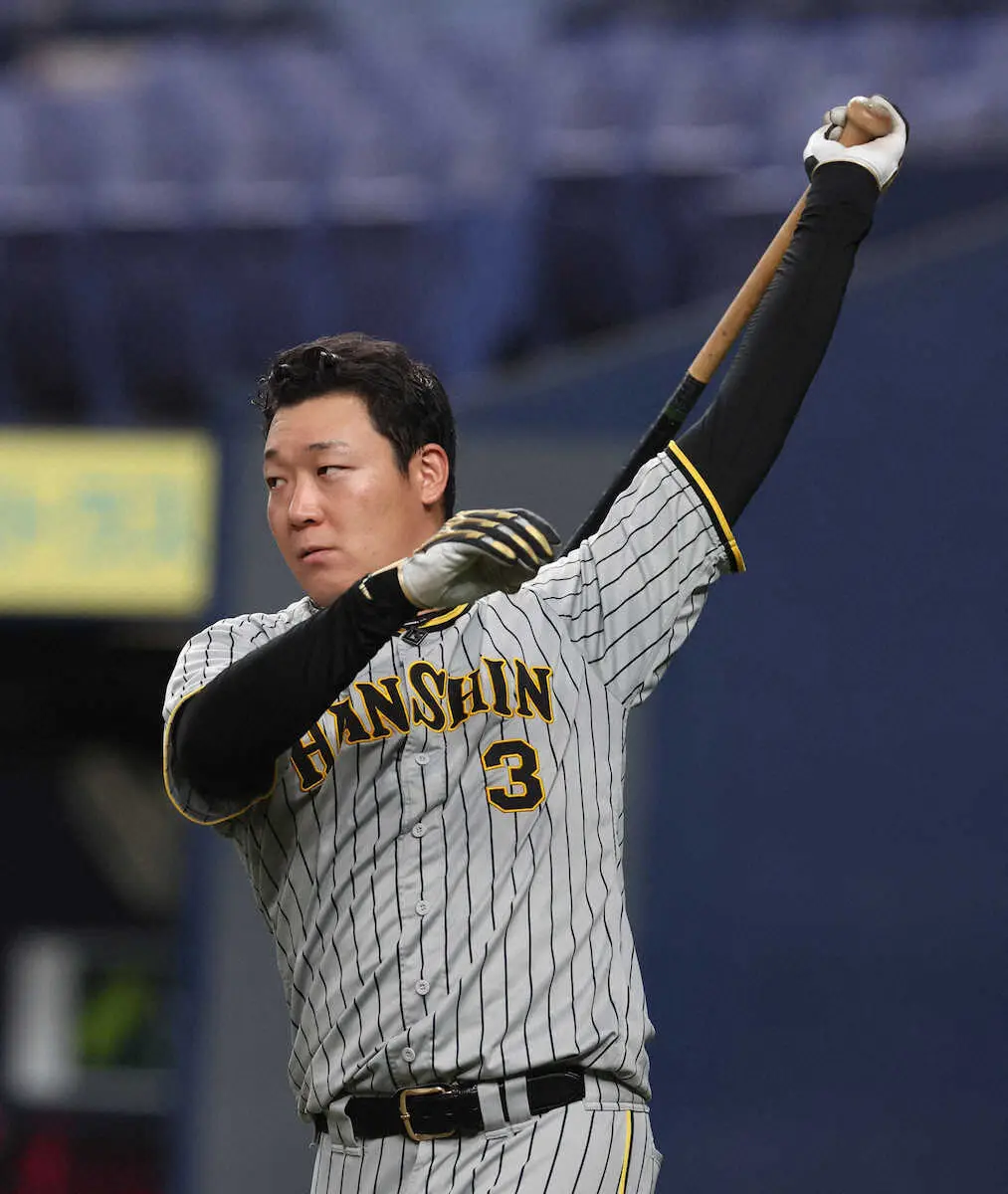 <阪神練習>打撃練習に臨む大山(撮影・大森 寛明)