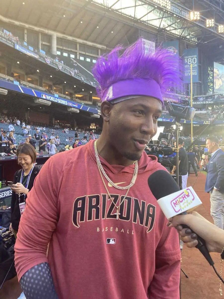 敵地での第2戦を制して意気上がるダイヤモンドバックスは試合前の練習中もリラックスムード。中でもペルドモ遊撃手は紫色のカツラを被ってフィールドに登場。普段通りに練習をこなした。