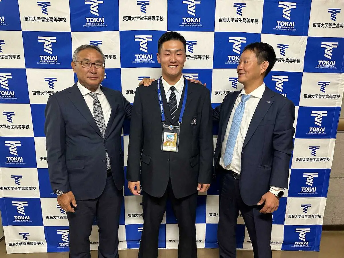 1メートル90、100キロの恵まれた体から最速154キロを誇る大型右腕。同校で指名あいさつを受け「抑えとしてチームに貢献したい。馬力を生かして短い回を抑えるのが自分の役割。松井裕樹投手を超えたい」と話した。守護神・松井裕が海外FA権を行使してメジャー挑戦する意向を示しており、将来の抑え候補として期待がかかる。「大魔神・佐々木(主浩)投手のようになってもらいたい」と担当の部坂俊之スカウト。